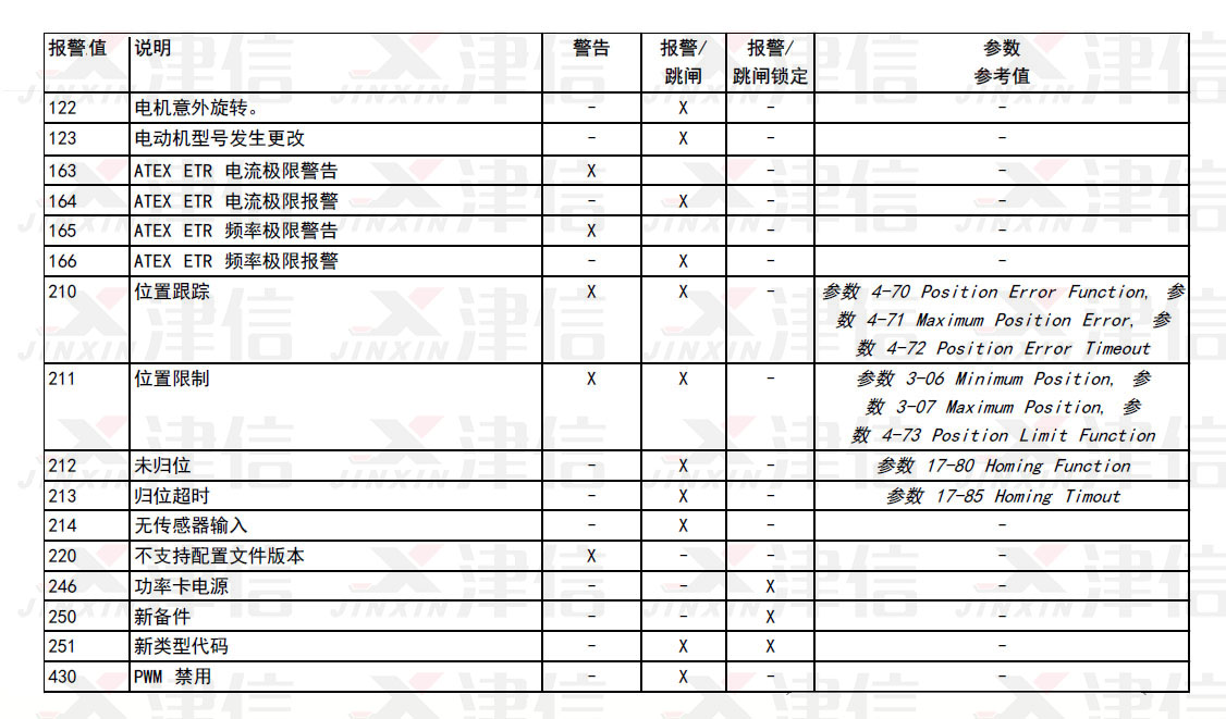 6、丹佛斯變頻器故障代碼ERR122,123,163,164,165,166,210,211,212,214,213,220,246,250,251,430